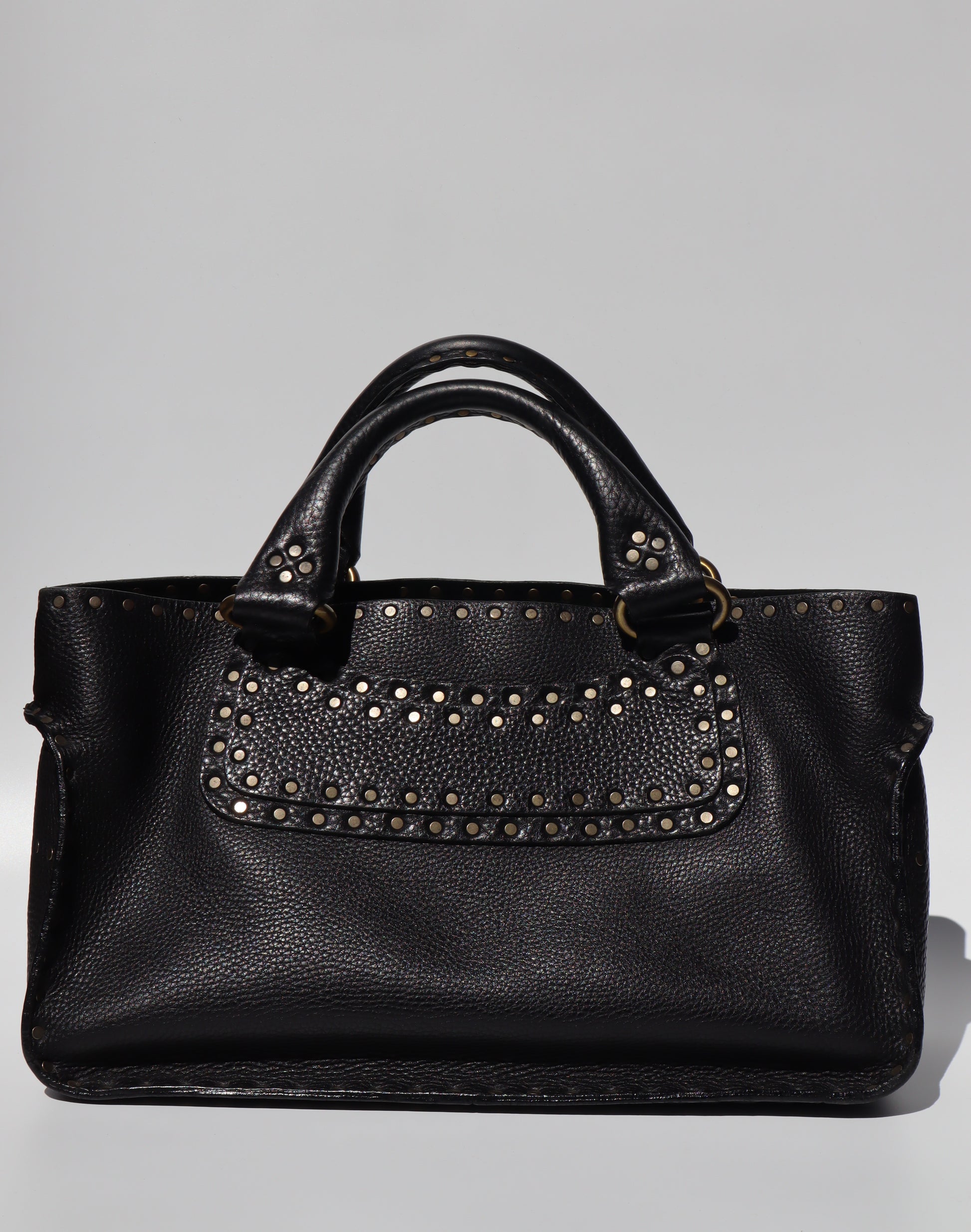 A true 2000s icon, the Celine Boogie Bag is defined by its signature stud detailing. Crafted in leather with dual top handles, this cult Y2K piece channels off duty model energy with a refined vintage edge. A timeless staple defined to be worn on repeat.
