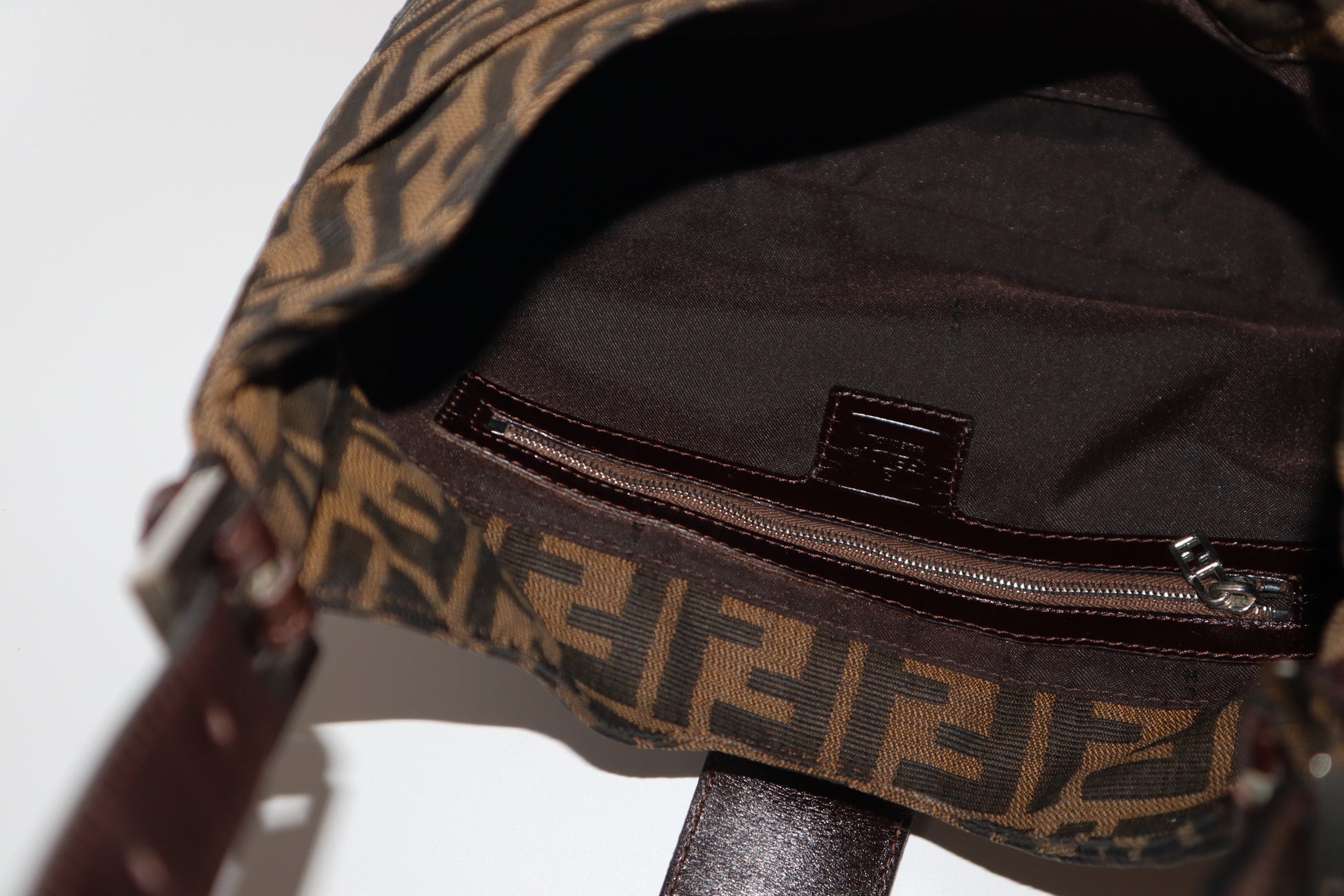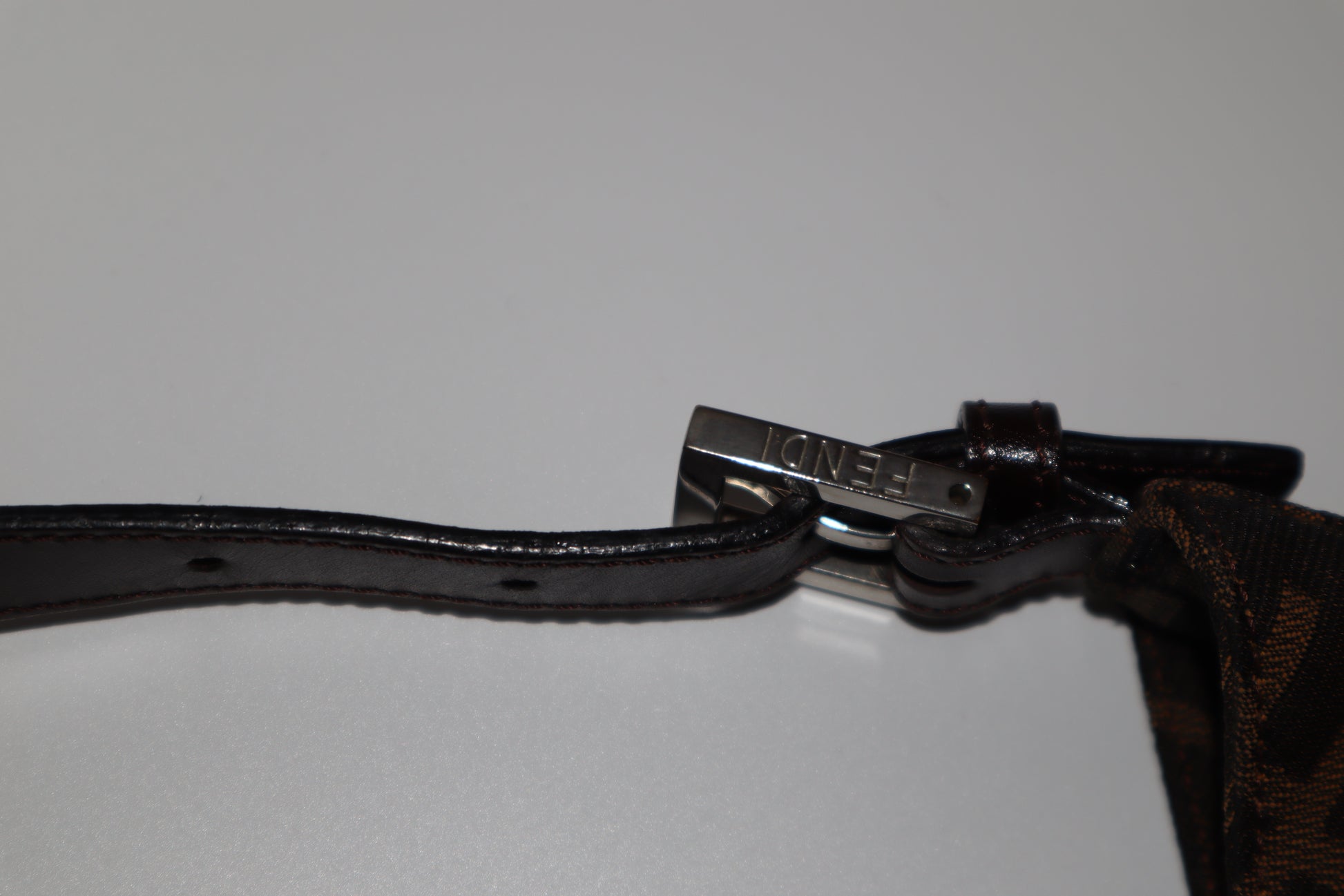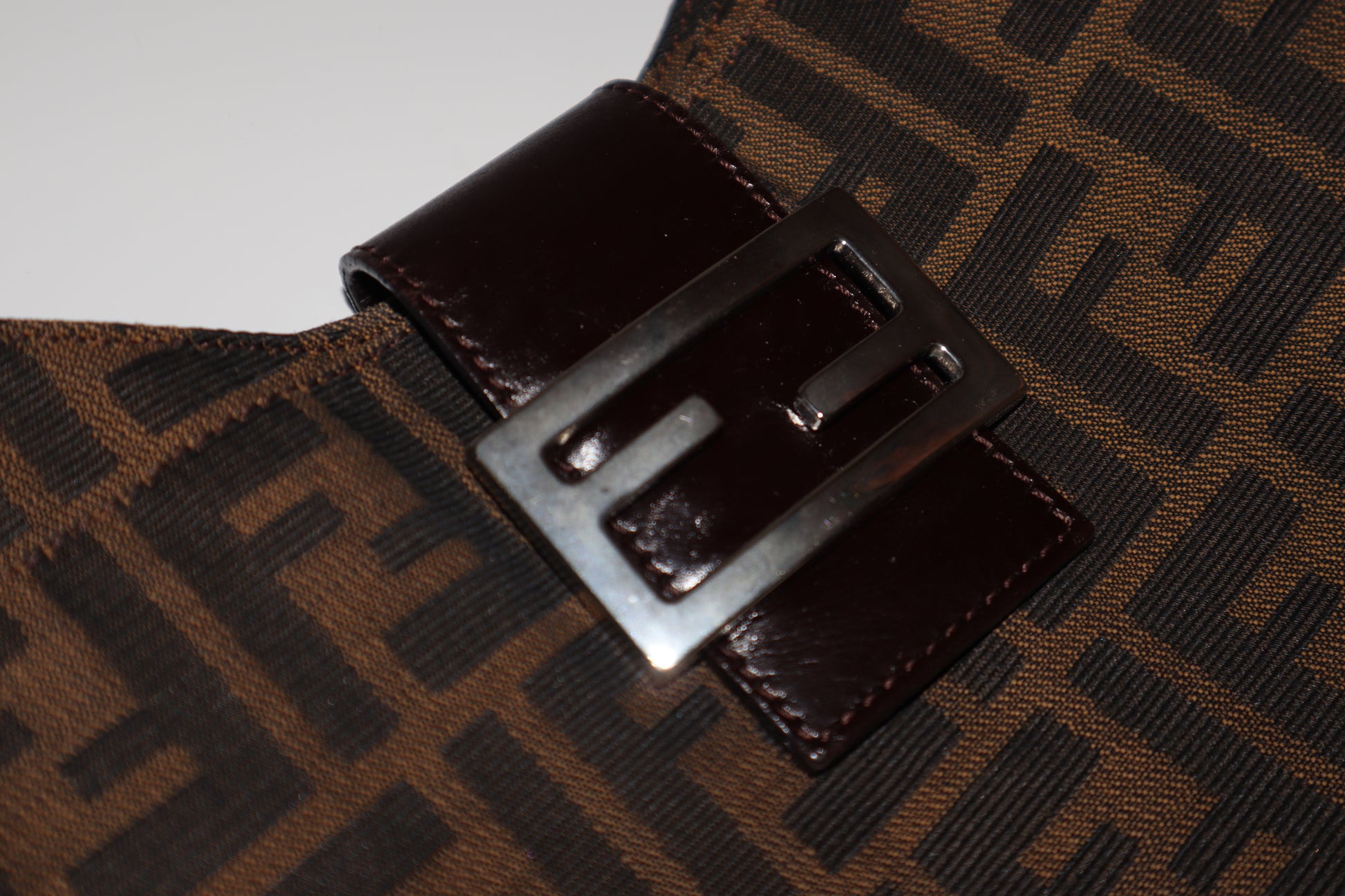 A signature Y2K silhouette crafted in Fendi's instantly recognisable Zucca canvas, this shoulder bag features the FF monogram throughout, finished with a leather strap and logo buckle detail at the front. Designed for easy, everyday wear with timeless appeal. A true Fendi classic waiting to be Loved, Again.